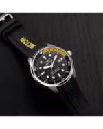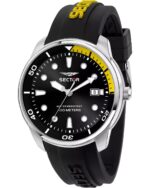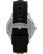 Μοντέρνο ωρολόι της SECTOR με σπορ χαρακτήρα. Η αντίθεση του μαύρου ματ στο καντράν και το λουράκι με το ασημί της κάσας και τις κίτρινες λεπτομέρειες το κάνουν να ξεχωρίζει και να τραβά τα βλέμματα.