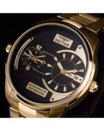Εντυπωσιακό ωρολόι της SECTOR με διπλή ένδειξη ώρας. Η αντίθεση που δημιουργεί το μαύρο ματ χρώμα του καντράν με το γυαλιστερό χρυσαφί στις λεπτομέρειες, στην χρυσαφί ατσάλινη κάσα και το μπρασελέ, καθός και το μεγάλο μέγεθος, θα τραβούν τα βλέμματα όποτε το φοράτε.