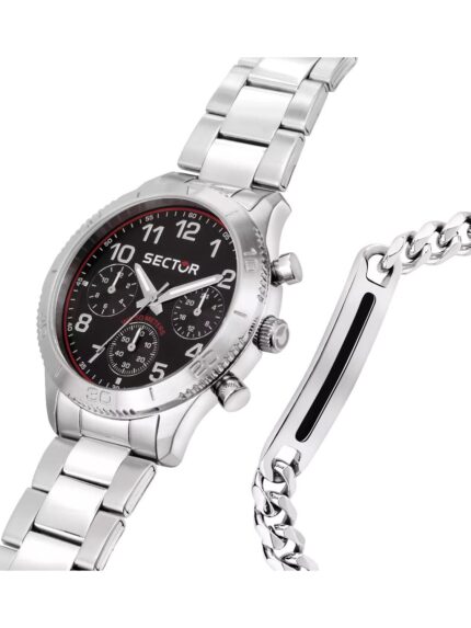SECTOR 270 Chronograph Silver Stainless Steel Bracelet Gift Set- Μαύρο