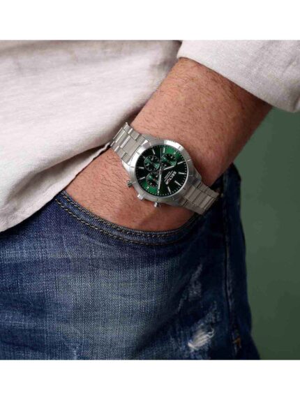 SECTOR 230 Silver Stainless Steel Bracelet- Πράσινο