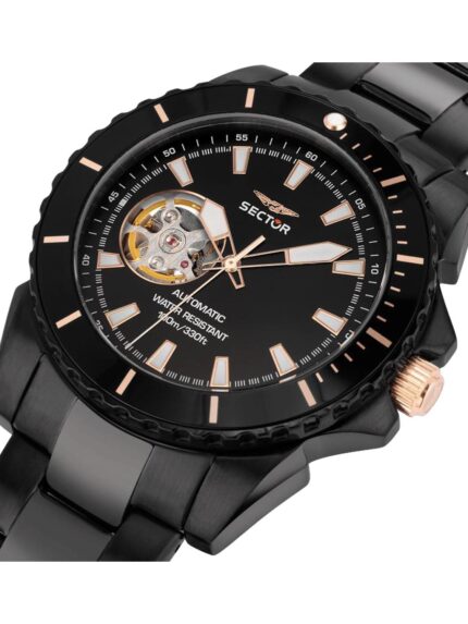 SECTOR 450 Automatic Black Stainless Steel Bracelet- Skeleton,Μαύρο