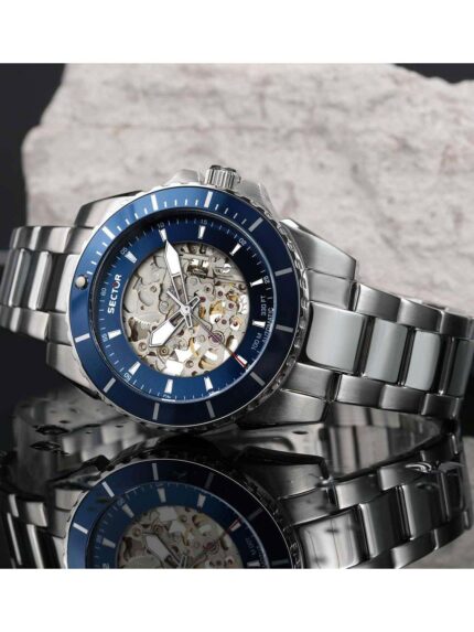 SECTOR 450 Automatic Silver Stainless Steel Bracelet- Skeleton,Μπλε