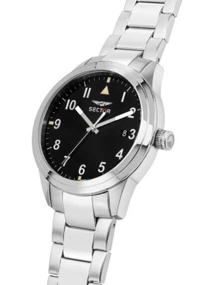 SECTOR 450 Silver Stainless Steel Bracelet- Μαύρο