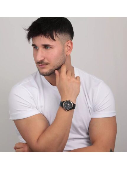 SECTOR 660 Black Leather Strap- Μαύρο