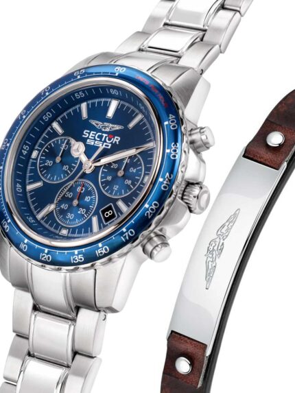 SECTOR 550 Chronograph Silver Stainless Steel Bracelet Gift Set- Μπλε